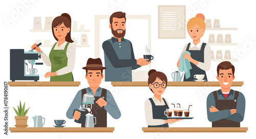 Clothing store set, vector flat illustration. Male and female characters shopping for clothes and shoes in fashion boutiques. Men and women fashion shop interior with goods on sale, buyers and sellers