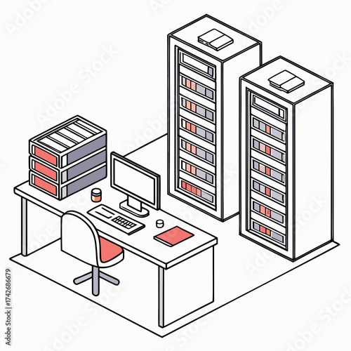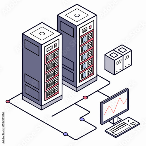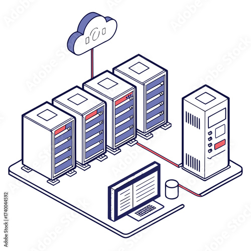 Cloud data server vector. Isometric technology database center for storage information. Network infrastructure, datacenter 3d icon isolated on white background