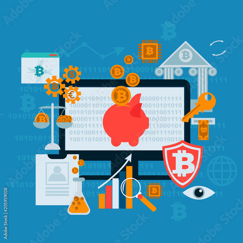 Cryptocurrency cloud mining flowchart. Vector isometric illustration.