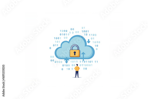 Cloud security concept vector web banner template. Cloud storage and padlock black low poly wireframe mesh on white background. Polygonal art style illustration.