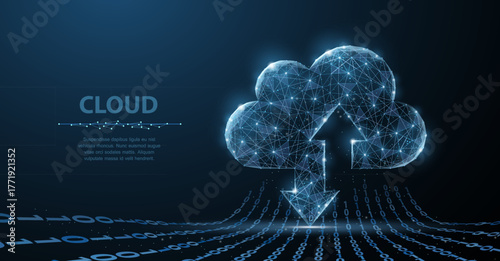 Data cloud storage low poly wireframe mesh made of points, lines and shapes. Vector polygonal art style illustration. Cloud technology poster banner template.
