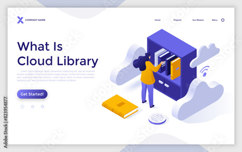Cloud storage vector website template, web page and landing page design for website and mobile site development. Cloud computing data storage.