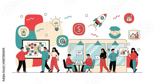 Coaching vector concept illustration for web banner, website page. Woman professional trainer coach giving presentation, lecture how to succeed in business. Training courses.