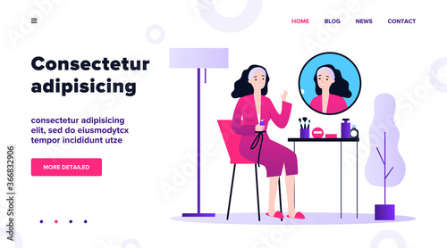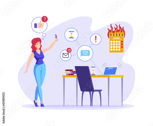 Business woman coach giving presentation or lecture, pointing at charts and diagrams on whiteboard, vector illustration. Business planning and strategy management training courses for website page etc
