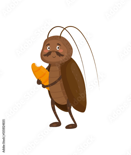 Cockroach mascot rubbing paws rudely vector illustration. Bad pest funny character isolated on white background. Kawai insect vermin emotion and expression concept