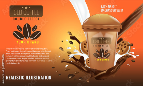 Coconut natural cosmetics, vector poster template. Realistic whole half coco, cream tube, jar, palm leaves. Organic coconut beauty skin care cosmetic product brand advertising composition with text.