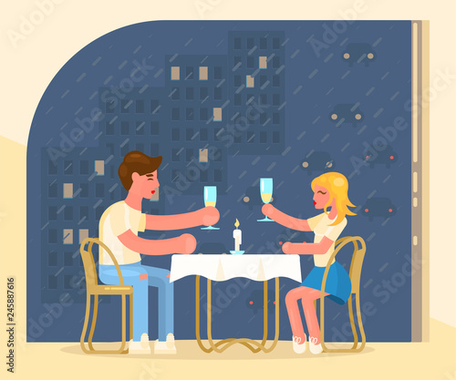 Coffee house concept vector illustration in flat design. Women sitting at table, drinking coffee and chatting. Coffee house interior.