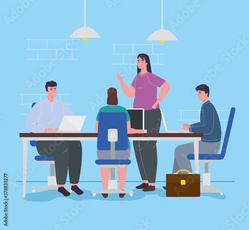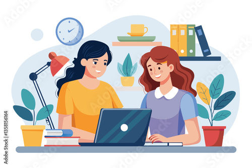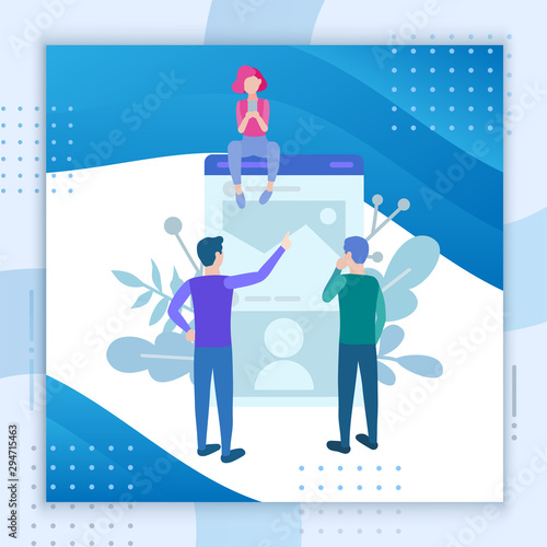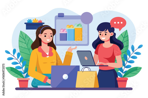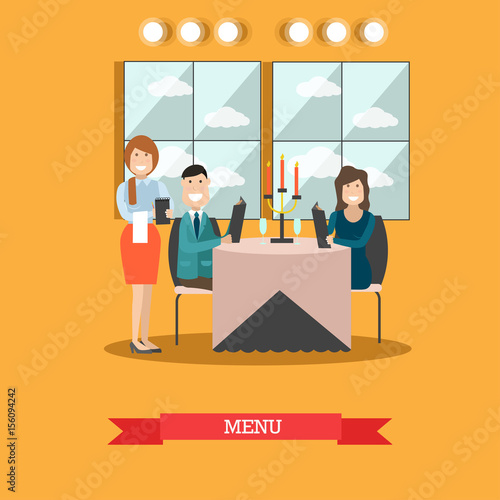 Coffee house concept vector illustration. Happy couple sitting at table, drinking coffee flat style design element.