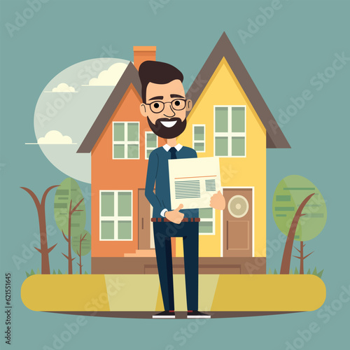Vector illustration of coffee house director with cup of coffee drink. Coffee house interior and coffee making equipment. Flat style design.