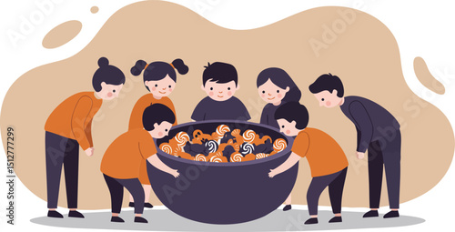Male and female characters roasting and grinding coffee beans, vector illustration. Coffee industry production composition for web banner, website page etc.