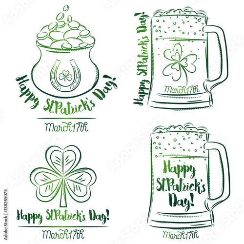 Coffee quotes and sayings hand lettering typography, vector illustration. Vintage labels, emblems with hand drawn coffee mugs and inspirational short phrases about coffee on white background.