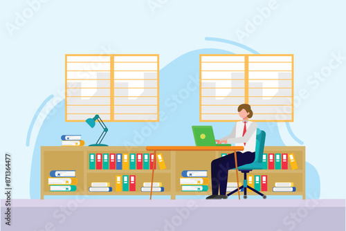 Coffee shop counter, barista making hot drink, flat vector illustration. Coffee house, bar, restaurant, cafe small business.