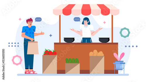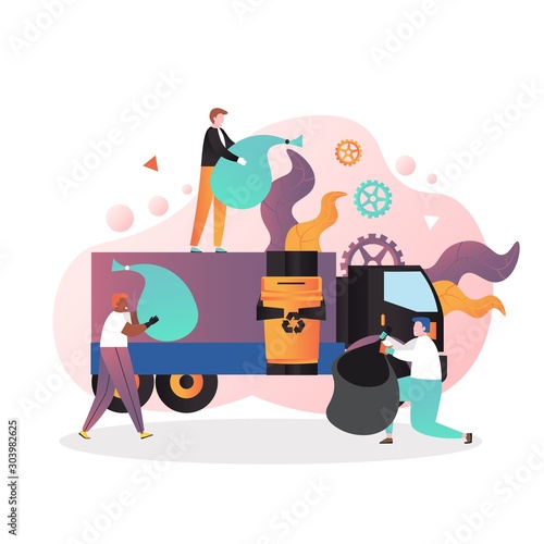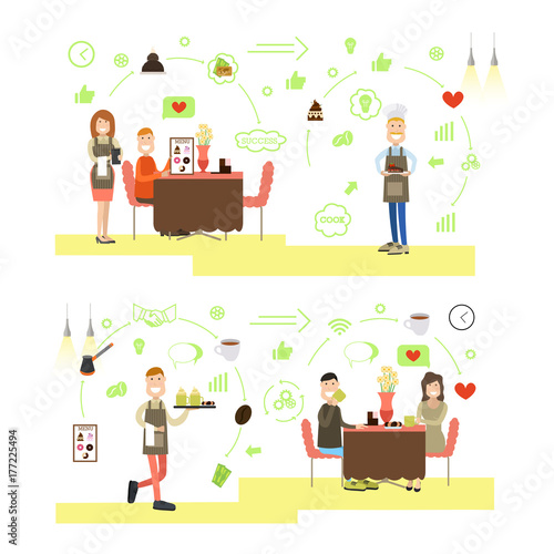 Tiny characters barista team making coffee using big hand coffee grinder, vector illustration. Coffee shop, coffeehouse, professional barkeeper training composition for web banner, website page etc.