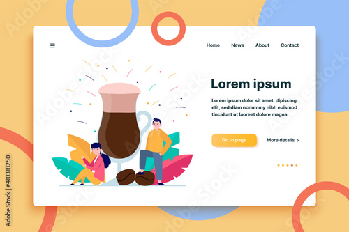 Coffee vector website template, web page and landing page design for website and mobile site development. Coffee break, energy drink health benefits concepts.