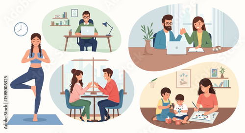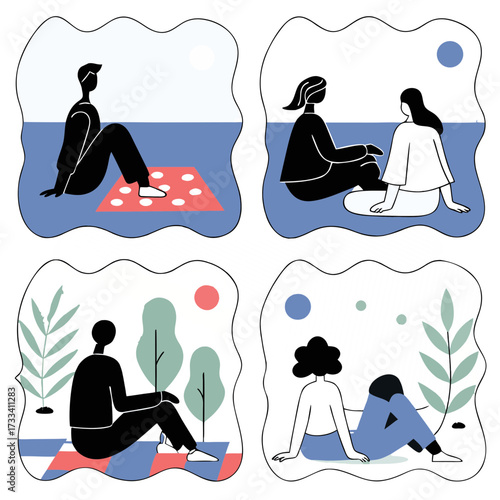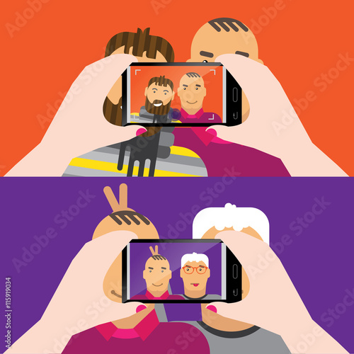 Happy couples drinking coffee in cafe, coffee house, restaurant, vector illustration isolated on white background. Coffee break, dating concept for web banner, website page, poster etc.