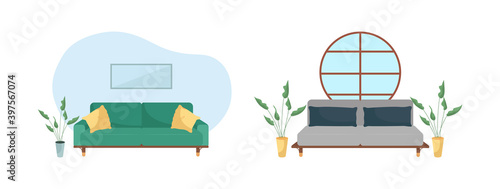 Collage photo frame mockup set. Empty photo and modern art frames for interior decoration, flat vector isolated illustration. Wall decor, plastic or wooden borders for photograph, painting, poster.