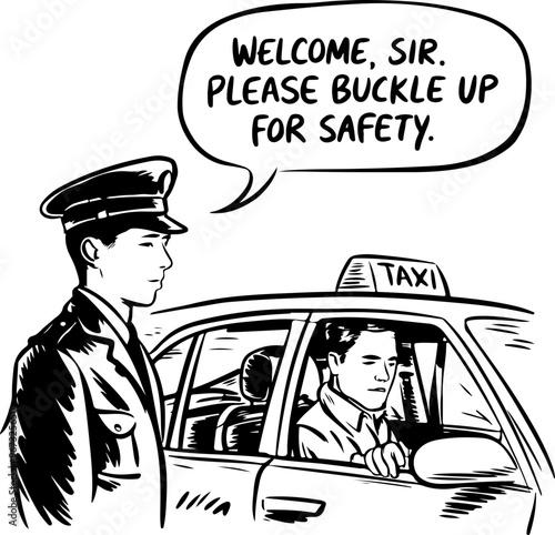 Set of four city taxi badges. Abstract car with driver, traditional taxy symbol, sample text. Graphic vintage style vector illustration.
