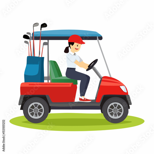 Woman cleaning supermarket or shopping mall floor using cleaning scrubber machine, vector flat illustration isolated on white background. Professional commercial janitorial services.