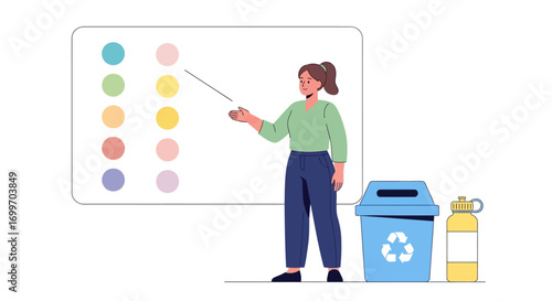 Woman washing window using squeegee, vector flat illustration isolated on white background. Cleaning company services, home and commercial window cleaning.