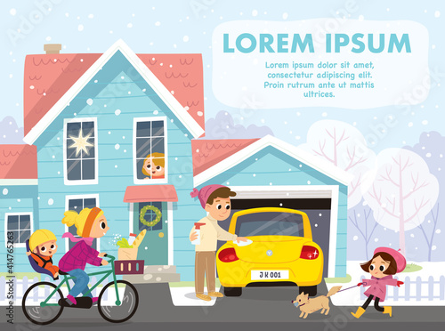 Commercial office, store and street cleaning scene set, flat vector isolated illustration. People washing window, cleaning floor, streets, doing laundry, working in garden.