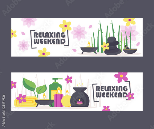 Commercial photography landing page design, website banner template set, flat vector illustration. Perfume product bottle shooting with professional camera for commercial use.