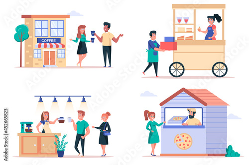 Commercial property arrest, flat vector illustration. Real estate arrest, seized assets for unpaid debts.