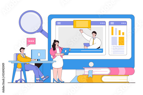 Communication with neighbors online, flat vector illustration. Neighborhood app for connecting with neighbors.