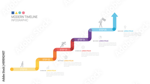 Company milestones vector timeline infographic. Company event timeline template with paper cut mountain rock and cloud landscape.