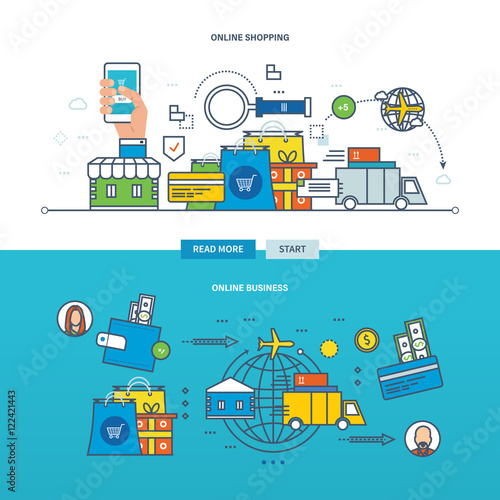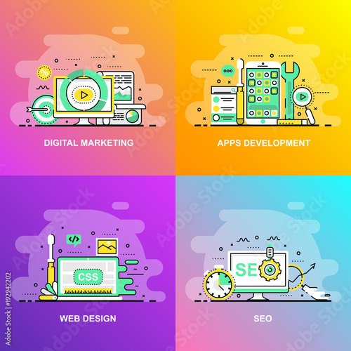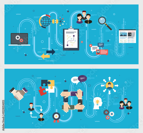 Vector set of horizontal banners with Programming language, Working and Programmer line art flat style design elements, web templates.
