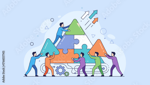 Vector illustration of big birthday holiday cake and tiny people confectioners decorating it with cream. Cake making services concept for web banner, website page etc.