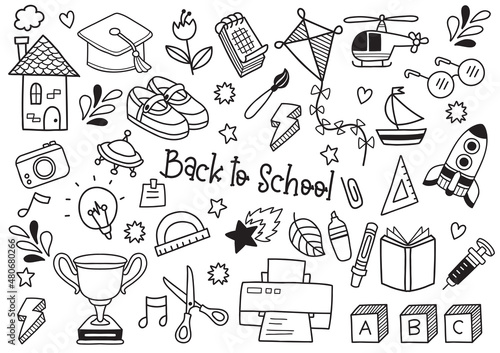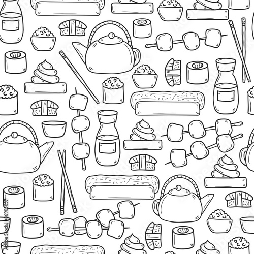 Vector seamless pattern with decorative pastry sweet food symbols, icons. Confectionery background, wrapping paper texture thin line art flat style design.