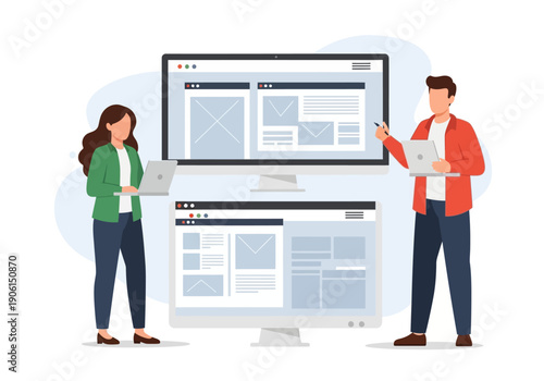 Construction engineer, architect giving presentation of architectural project of house building, flat vector illustration. Building industry. Construction team meeting.