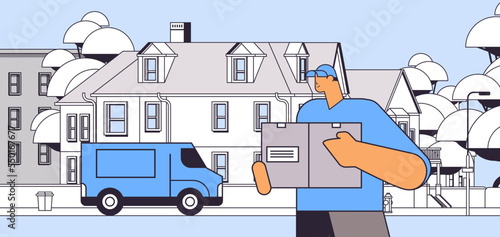 Construction engineer controls building process. Foreman organising construction works on site. Cartoon vector illustration. Man monitors progress of the construction of the apartment building.