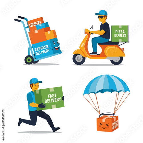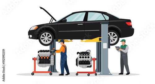 Builders with hammer, wheelbarrow working at construction site, building brick wall, vector illustration. Construction industry concept for web banner, website page etc.