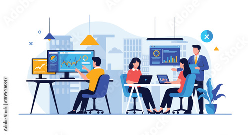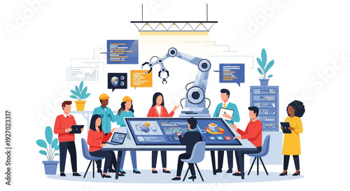 Contact center, vector flat style design illustration. Online customer support services concept with consultants interacting with people via web chat, email communication channels for web banner etc.