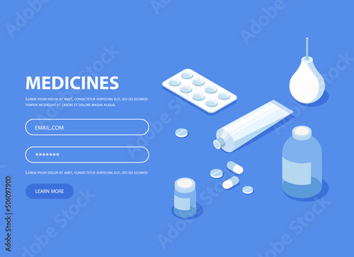 Contact lenses accessory for vision realistic set. Vector Illustration of optometry corrective glasses, bottle with liquid solution for hygiene and care, case for storage and tweezers