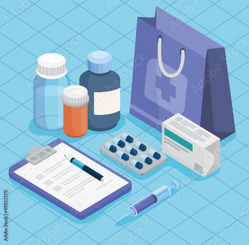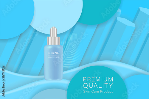 Contact lenses, container, tweezers and solution bottle mock up. Ophthalmology equipment for vision disorder correction. Realistic vector advertising medical poster or banner design