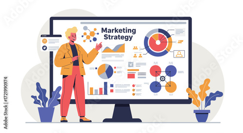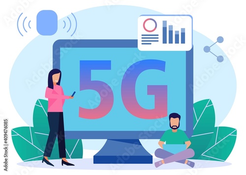Contact us concept vector illustration. Huge desktop computer with envelope, email sign, message bubble. Male and female characters sending messages using laptop, mobile phone