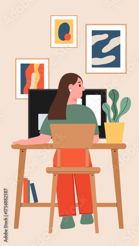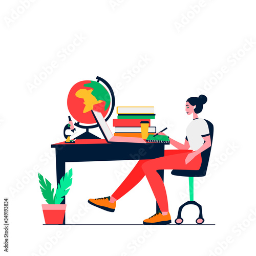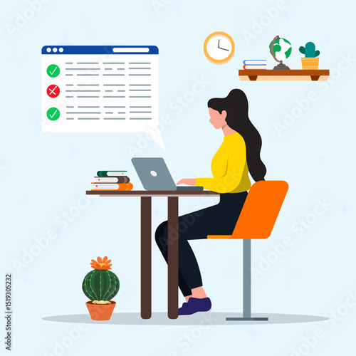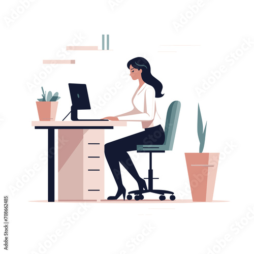 Restaurant reception concept vector illustration. Young woman receptionist standing at reception desk. Cook people flat style design element, icon isolated on white background.