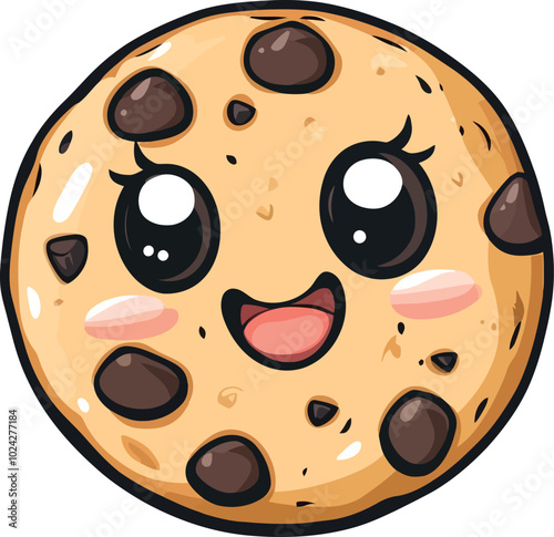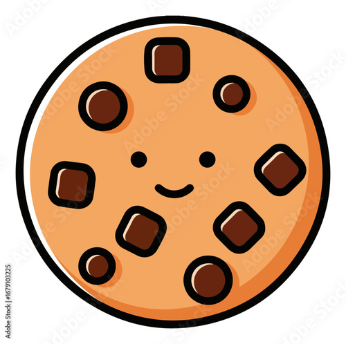 Cookie cartoon vector character. Cute face mascot illustration. Funny biscuit with chocolate chip. Happy anthropomorphic snack with comic smile expression isolated on white background