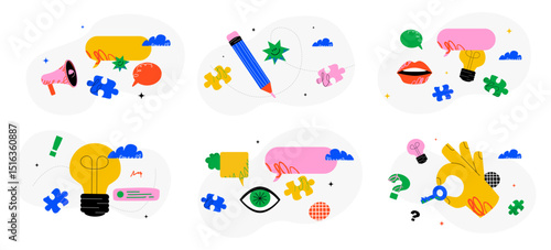 Copywriter isometric icon set, flat vector isolated illustration. Blogging, content management, copywriting online course infographic elements.