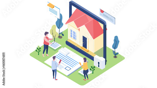 Copywriter, landing page design, website banner template, flat vector isometric illustration. Blogging, content management.