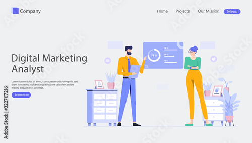 Copywriting landing page website template. Blogging concept vector illustration. Bloggers, freelancers, copywriters. Blog content, internet blogging service.