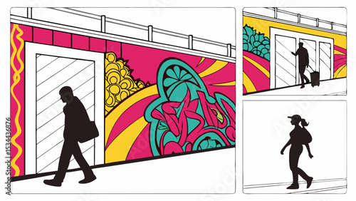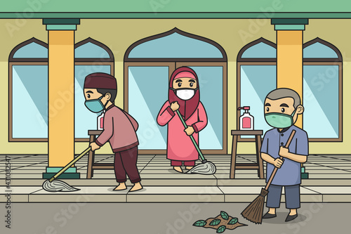 People in full hazmat suits disinfecting city street bus stop surfaces affected by corona virus, vector flat illustration. Corona virus cleaning and disinfection services. Infection spread prevention.