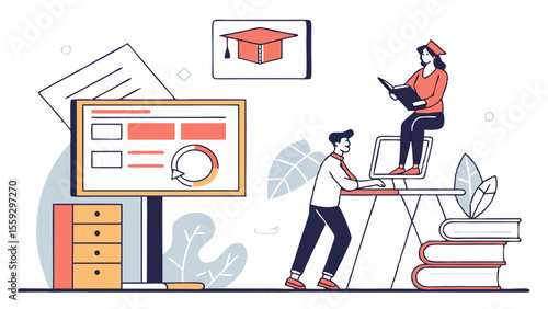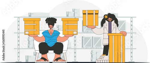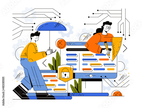 Coronavirus garbage, contaminated trash, vector flat illustration. People collecting disposable gloves, face masks from sidewalks and streets in plastic bags and throwing them into special trash bin.