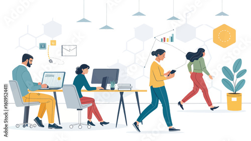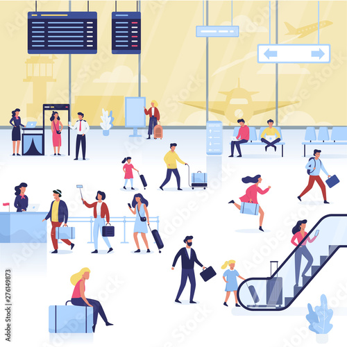 People walking along the street during corona virus pandemic, vector flat illustration. Concept of restrictions on people mobility, movement to stay healthy and prevent COVID-19 virus disease spread.