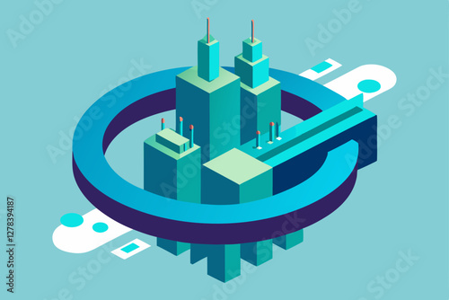 Covid-19 vaccine vials, injection syringe on display podium, world famous landmarks, vector illustration in paper art style. Coronavirus vaccination, immunization. Travel after covid vaccine.