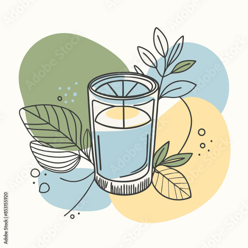White blank cosmetic bottle on round display podium, paper cut exotic flowers, palm tree leaves, vector illustration. Tropical floral background for beauty product advertising.