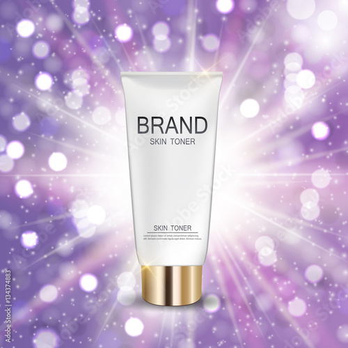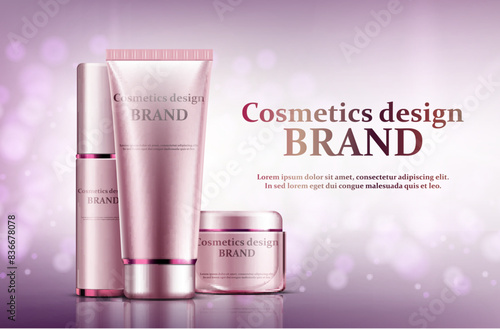 Cosmetic products ad. Vector 3d illustration. Skin care bottle template design. Face and body make up cream and lotion.