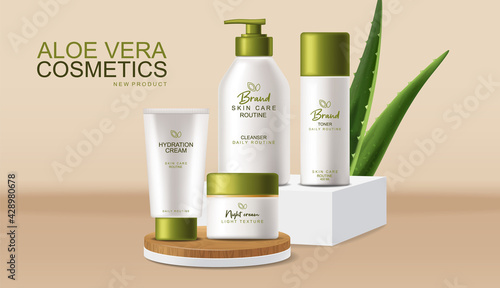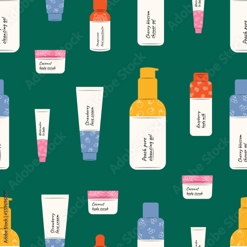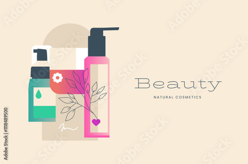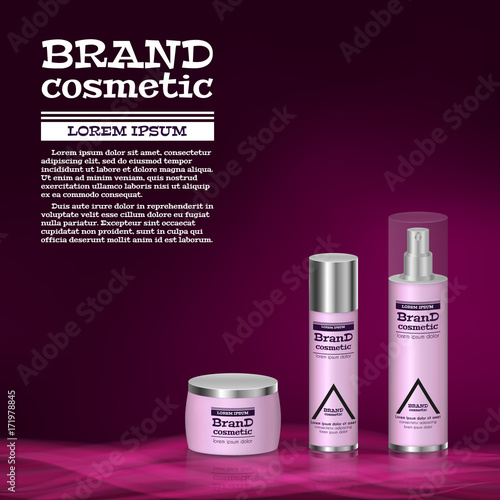 Cosmetic products for hair and skin care vector design. Skincare bottle, jar, tube, shampoo and hair spray. Beauty gift box for woman illustration. Cosmetics sale and discount advertisement template